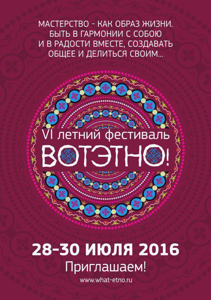 Благодарим организаторов фестиваля ВотЭтно 2016 за чудесную атмосферу! А также наших партнёров по площадке - из пространства "Реноме" и всех гостей наших совместных мастер-классов за участие и интерес! Потрясающая Компания и опыт взаимодействия! До новых встреч в следующем году!