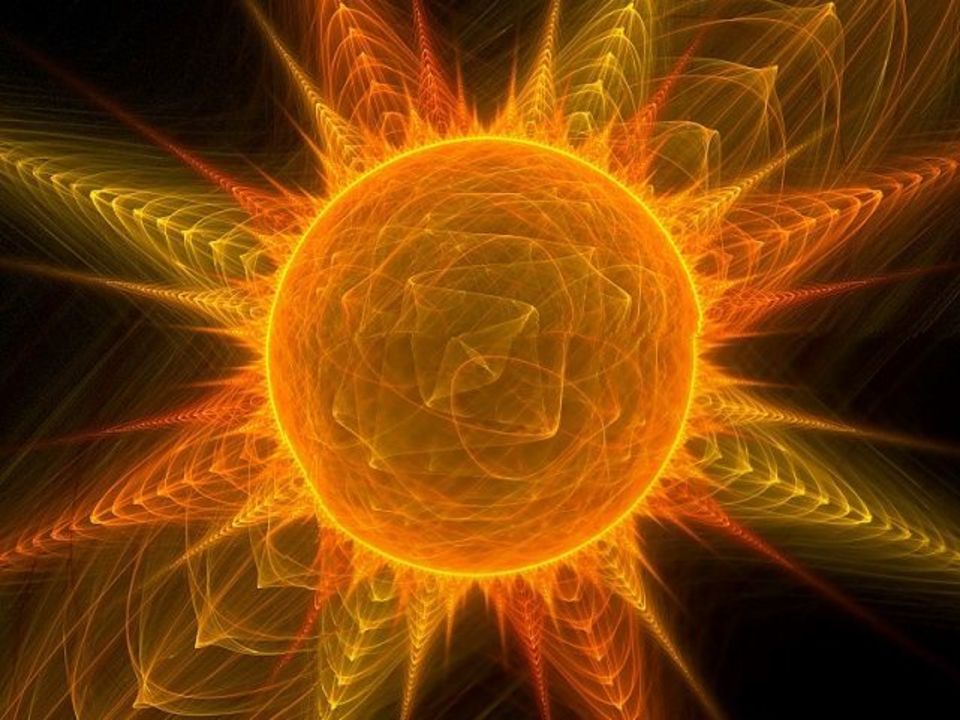 ММ: Говорили и ранее, что Разумное Электромагнитное Поле Солнца, по-старому – Логос Солнца, имеет форму огромного Тора с такой же радужной последовательностью, как и у вашей Планеты, но расположенной в обратном порядке. Так, если Красная сфера у Земли расположена в центре, то у Солнца – во Внешней части Тора. Соответственно, если Оранжевая и Жёлтая часть земных сфер расположена последовательно выше Красного ядра, то у Солнца Оранжевая и Жёлтая сферы словно проваливаются в глубь Солнечного Тора. Если проследить такую закономерность до самого Центра Солнечного Тора, где присутствует Фиолетовое Ядро, то у Земли Фиолетовая сфера находится снаружи и является самой последней сферой Огненных Небес, которые, как можно догадаться, имеют непосредственную связь с Солнечным Ядром, а именно с Центральным Ядром высшего Разума- Логоса Солнца или всей Солнечной системы, что одно и то же.