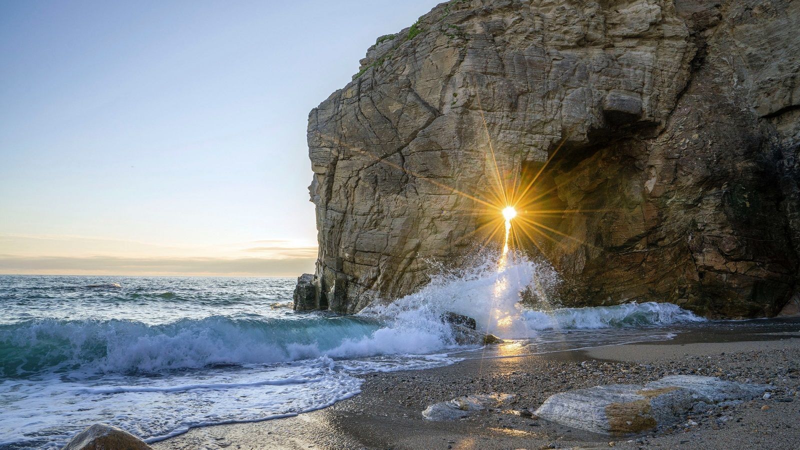 Теперь я вижу, что камни перешли в более мелкие и потом уже в крупный песок. В одной из скал я вижу вход в пещеру, грот наверное. Вы очень быстро пошли туда, потому что действительно на улице очень холодный ветер.
