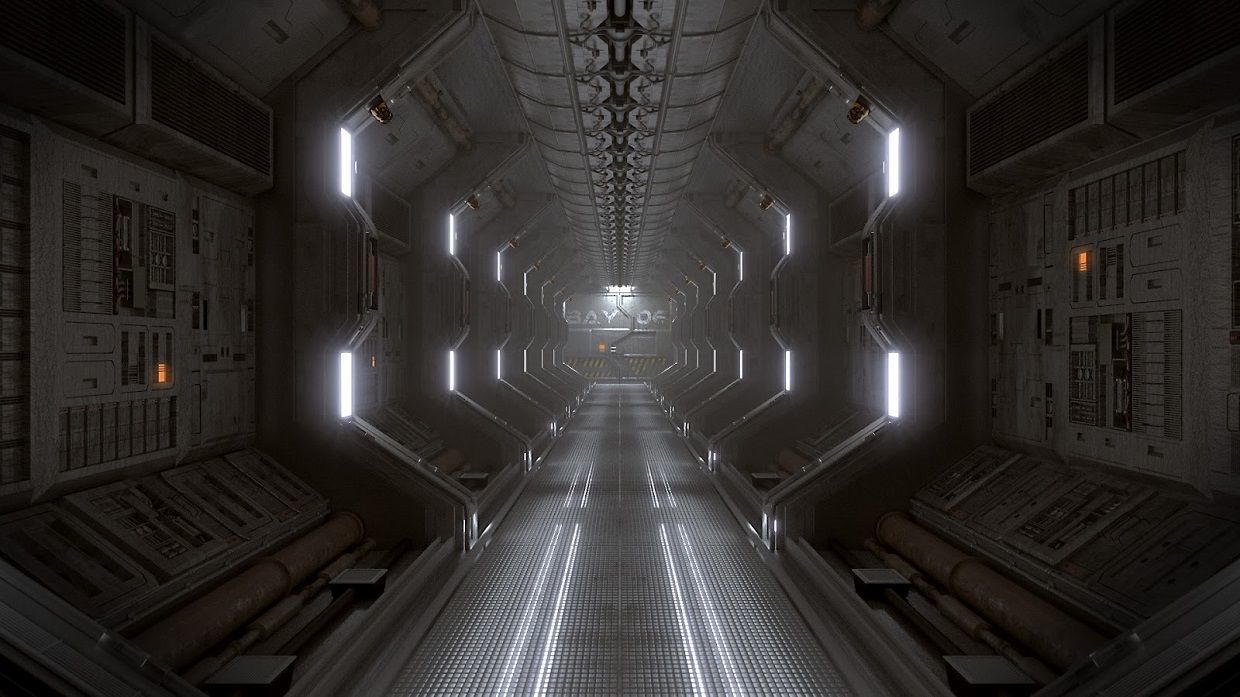 Сейчас вижу жилой отсек, типа многоэтажного дома. В каждом комнате есть окно во внутренний двор корабля.